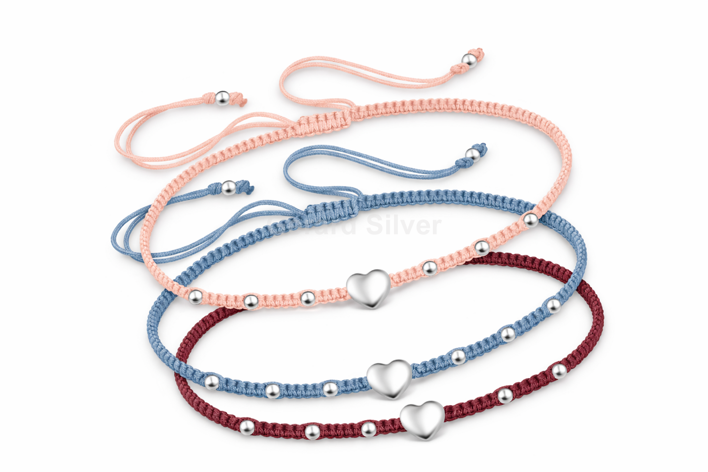 Pulsera de Plata y Macramé Corazón ( 2 colores )