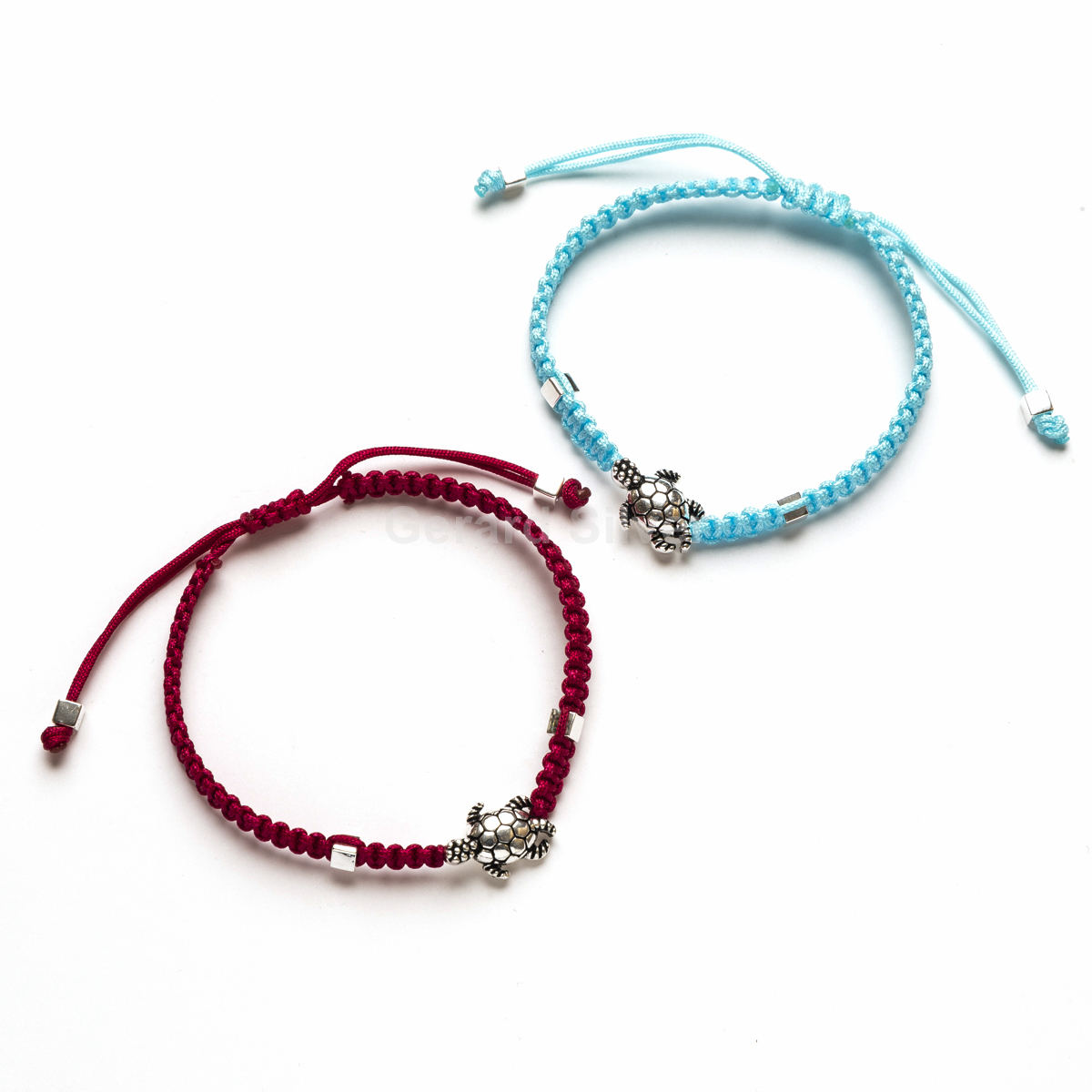 • Pulsera Extensible de Plata y Macramé Tortuga ( Agua Marina y Burdeos) - PU216